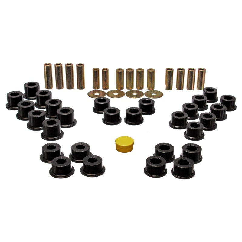 For both front and rear of suspensions on cars, trucks and SUVs. Made of Energy's Hyper-Flex performance polyurethane for optimum performance and durability. Maintains proper alignment under extreme conditions on the street, track or off-road. Improves veh