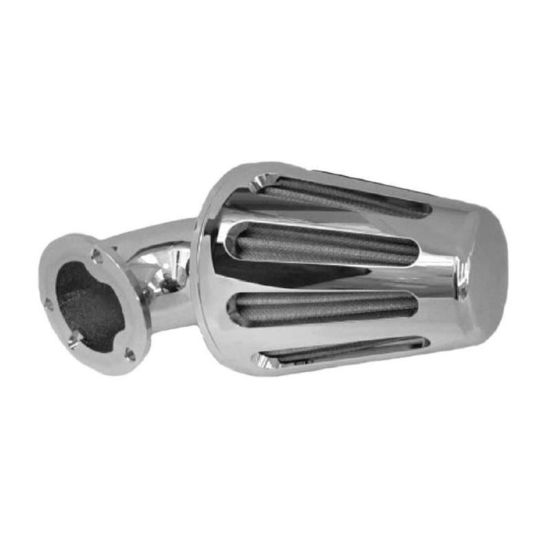 Custom tilt forward aircleaners in chrome or black finishKits include high flow airfilter, 90 degree manifold and CNC billet housingAir cleaner diameter 4 1/2in., length 10in. (chopped), 12in. (cone)Fits Sportster and Big Twin models with applicable breath