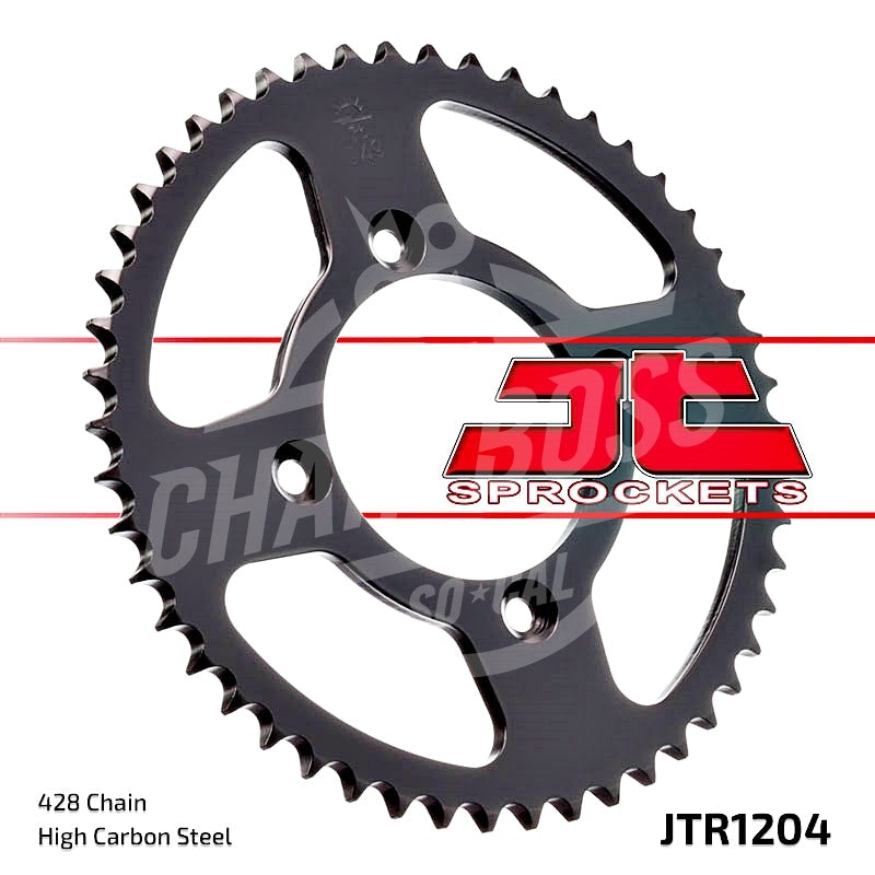 Technical Specifications:Brand: JT SprocketsPlacement: RearPitch: 428Teeth: 46 TeethColor: BlackMaterial: SteelMPN: JTR1204.46Computer-designed to achieve ultimate strength at minimum weightJT combines leading-edge technology with top materials to produce